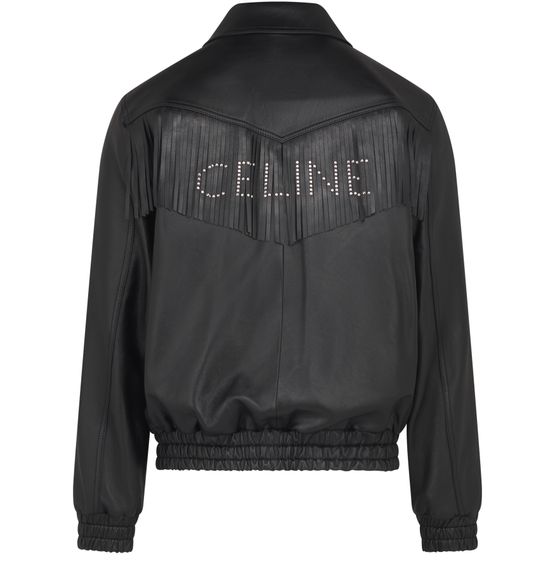 Description : Celine embroidery with studs on the back, loose fit, shirt collar, 2 diagonal welt pockets, elastic waistband and cuffs, leather cowboy fringes on the back, zippered closure, made in italy, reference: 2eb53280d.