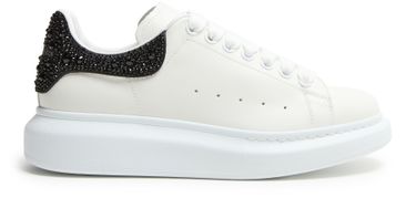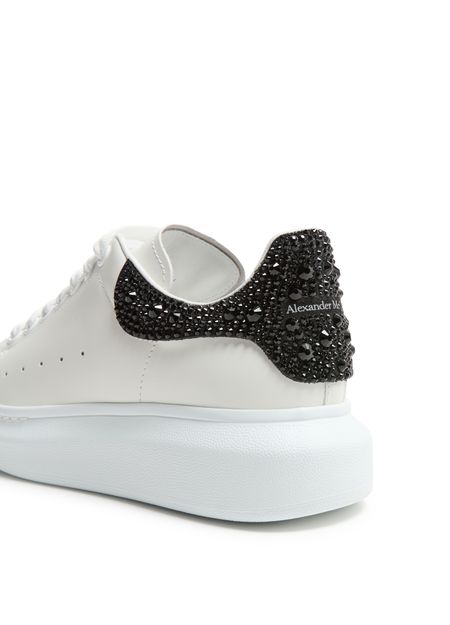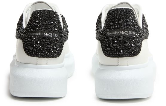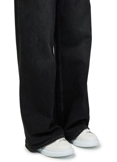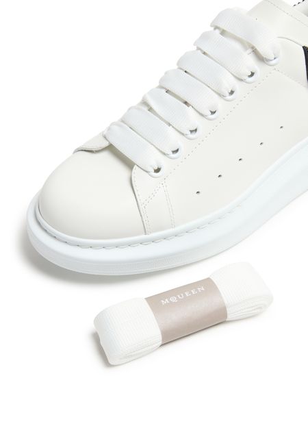 Reveal Alexander McQueen's oversized rubber sneakers, crafted from smooth leather with a robust platform sole. The round, closed toe and secure laces with strap ensure a modern fit, while visible stitching and signature logos at the back and tongue add a distinctive, contemporary edge.