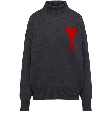 Ami's Ami de Cœur sweater is made of warm fabric with a mockneck, cuffs, and an embroidered logo on the chest.