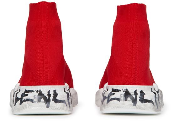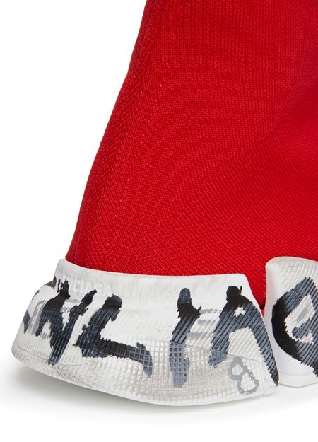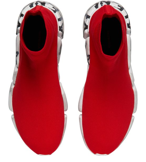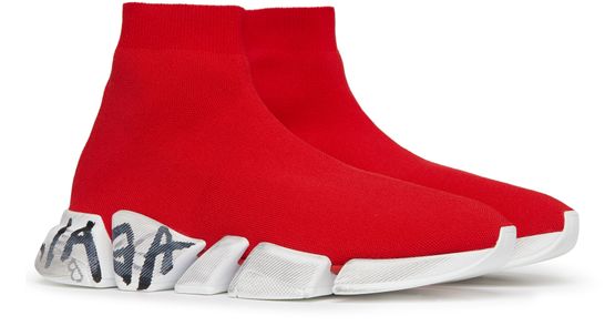 Balenciaga's Sneakers Speed 2.0 feature a signed rubber sole, elasticated sides, visible stitching, and a logo embossed on the back of the heel.