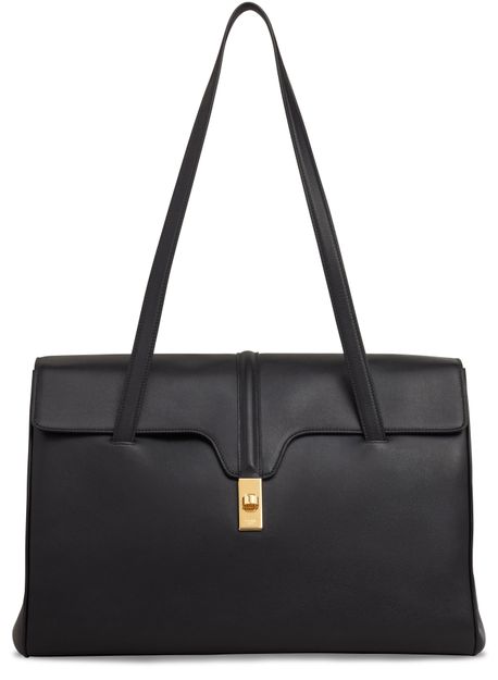 Description : gold metal hardware finishing, shoulder carry, turn lock closure, inner flat pocket, two internal compartments, leather handles with 11 in (29 cm) drop, reference : 194043cr4.