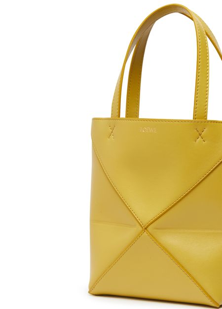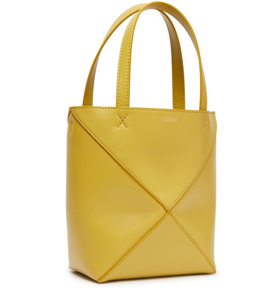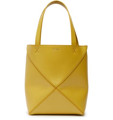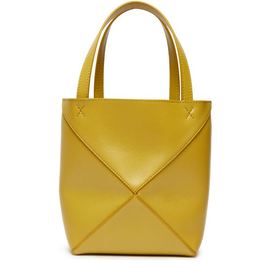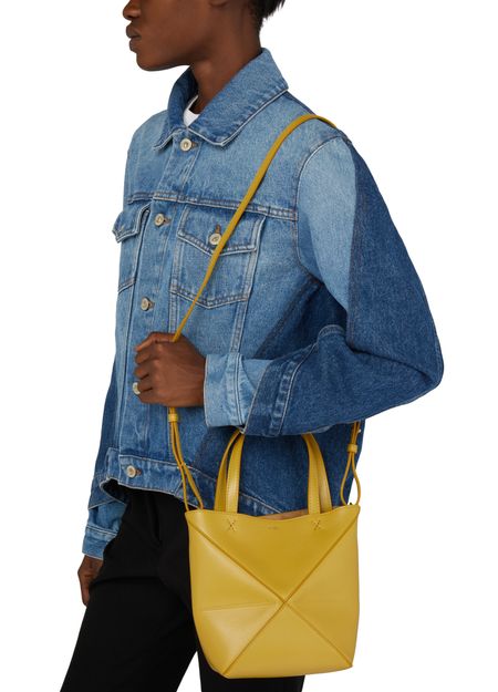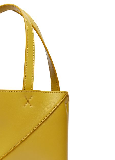 Loewe's Puzzle mini tote bag is a chic accessory made from smooth leather with visible stitching details. It features a front logo, perfect for adding a touch of luxury to any outfit. This mini bag can be worn in the hand for a sophisticated and elegant look.