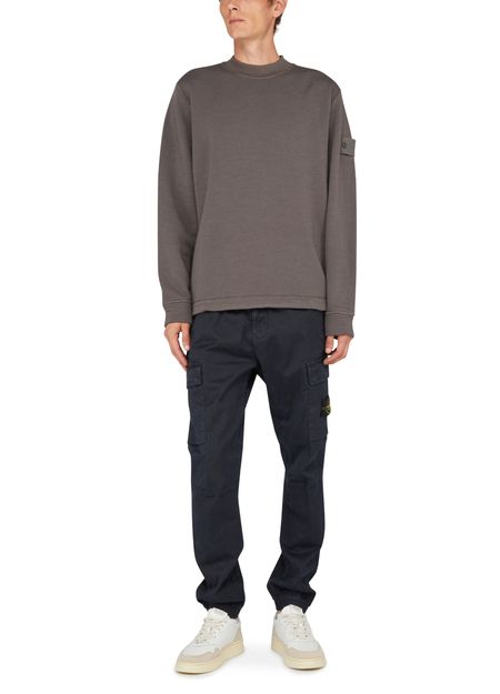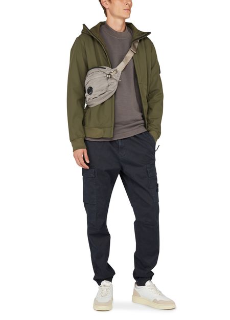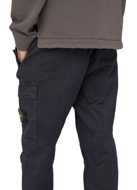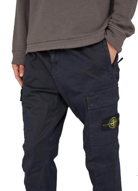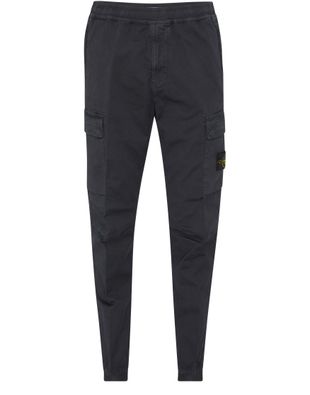 Stone Island's pants feature an iconic logo patch on the side and an appliquéd logo at the back label. The ankle-length design with large side pockets and side welt pockets offers both style and functionality. The elasticated waist and slim fit make them a comfortable and versatile choice for a modern look.