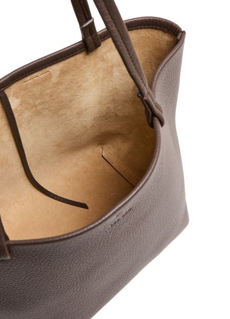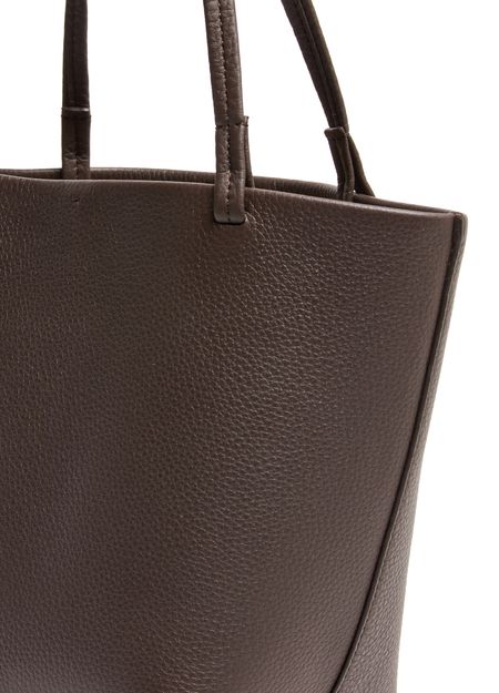 Reveal The Row's Park medium tote bag, crafted from grained leather with double handles for effortless carrying. The visible stitching and embossed logo highlight refined craftsmanship, while a spacious interior compartment ensures practicality. This tote blends modern sophistication with everyday versatility for a polished statement.