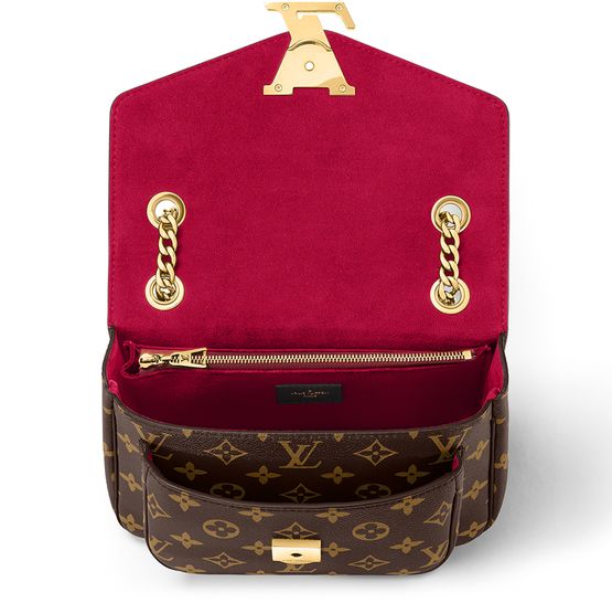 The compact Passy handbag in Monogram canvas with a sliding chain is the quintessence of casual chic. A functional day-to-evening bag, it has front and back outside pockets for quick access to essentials as well as two inside pockets. It closes with a magnetic LV lock in black resin with a gold-color outline.
