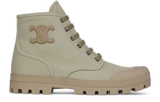 • Description : round shape with rubber toe cap, triomphe leather patch on the external side of the shoe, lining in canvas for a lightweight shoe, cotton laces, calfskin insole, chunky lug rubber outsole with diamond pattern, reference : 343142198c.