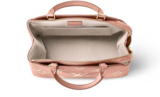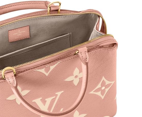 Smart and sophisticated, the Petit Palais handbag is crafted from Monogram Empreinte embossed leather, edited for Winter 2022, in a fresh, delicate bicolor combination. The supple leather is accented with golden hardware, including a chic padlock – a nod to the Maison’s legacy of fine luggage. The detachable strap can be adjusted for shoulder or cross-body wear.
