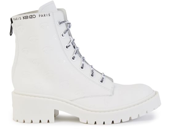 The Pike lace-up boots are a Kenzo design. These high shoes feature a thick sole and tone-on-tone patterns.