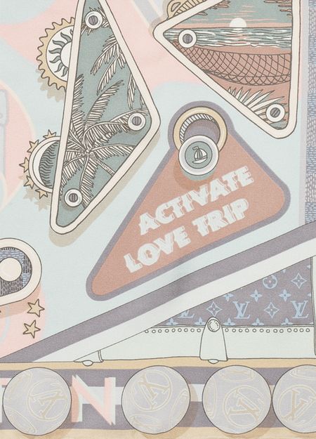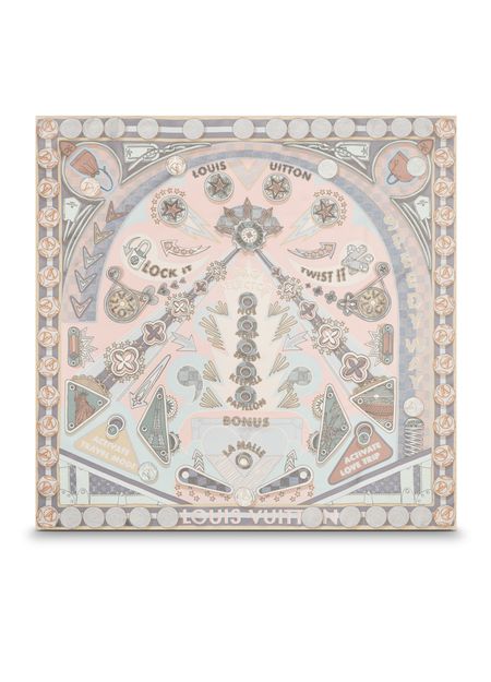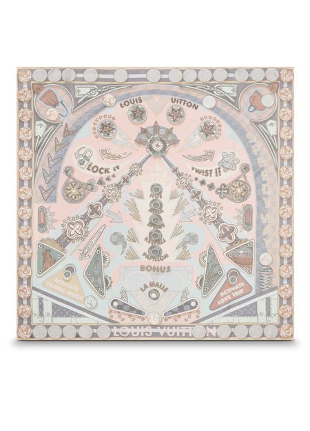 The Pinball LV square features a games-inspired print, giving this intricate scarf a fun update. World-famous landmarks, such as the Eiffel Tower, echo the enduring traveler spirit of the House. Hallmark Louis Vuitton symbols enhance this bright and lively accessory crafted in opulent silk.