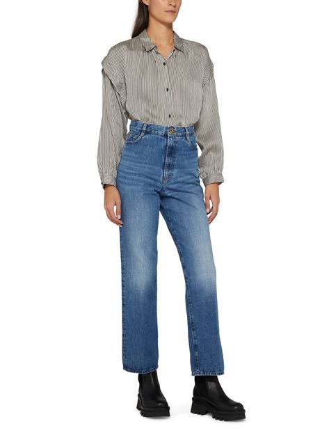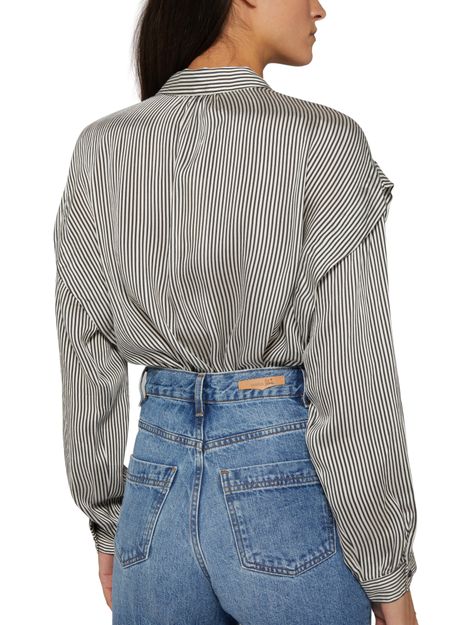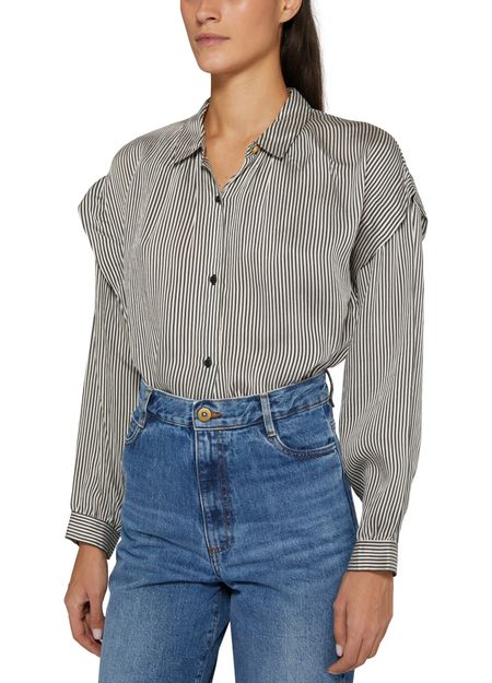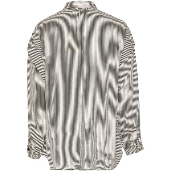Description : long-sleeved, logo at the back label, front buttoned closure, button fastening, shirt collar, buttoned cuffs, cuffed sleeves, six front buttons.