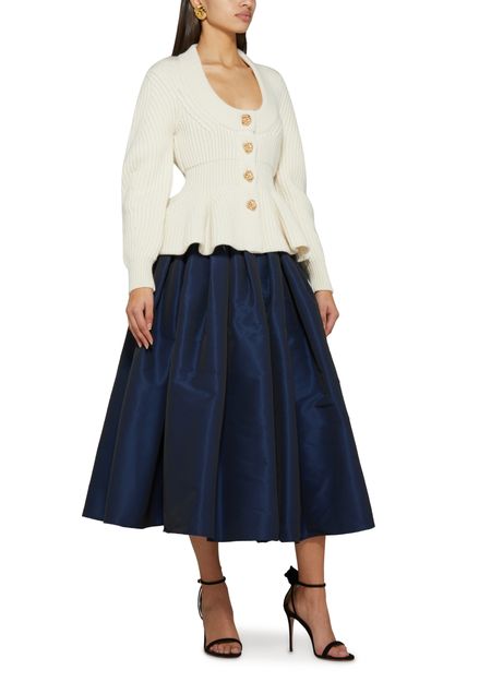 Alexander McQueen's midi skirt features a flattering pleated design, giving it a timeless and elegant look. The midi length and concealed zip fastening at the back add a touch of sophistication to the piece, making it perfect for both formal and casual occasions. A versatile and stylish addition to any wardrobe.