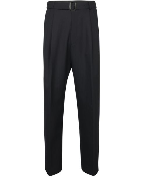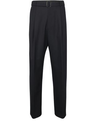 These monochrome pants by Dries Van Noten feature a straight fluid cut. The waist is marked by an adjustable belt and it has several pockets.