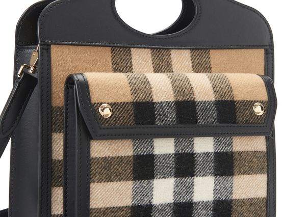 Burberry has designed and original and sophisticated piece. This Pocket bag features the brand's iconic motif with a flap pocket and a thin shoulder strap for shoulder or cross-body wear.