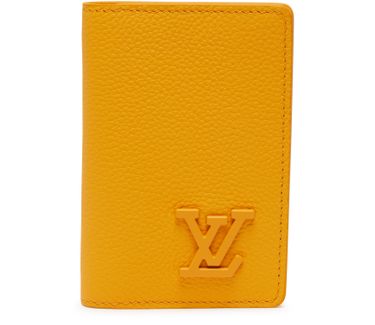 Louis Vuitton’s classic Pocket Organizer joins the LV Aerogram line with this version in soft, supple cowhide dyed a warm shade of saffron yellow. The “LV” initials in tone-on-tone metal add a refined signature flourish. And inside, it’s an ultra-practical wallet, with multiple compartments to keep everything neatly organized.