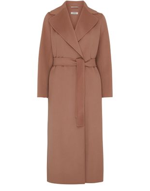 S Max Mara's Poldo long coat is a timeless and sophisticated outerwear piece. With long sleeves and a V-neck, it exudes elegance and style. The belted waist accentuates the silhouette, while side pockets add practicality. This versatile coat is a must-have for any fashion-forward wardrobe.