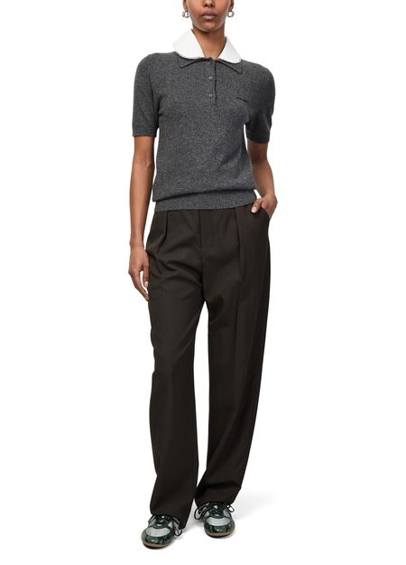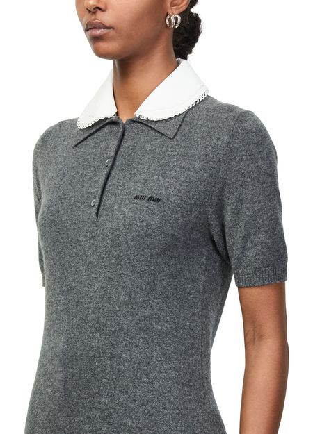 Reveal Miu Miu's polo shirt with peter pan collar, featuring a delicately embroidered chest logo and short sleeves. The button fastening adds a refined touch, while the soft texture ensures comfort. Perfect for elevating both casual and sophisticated looks with a signature modern twist.