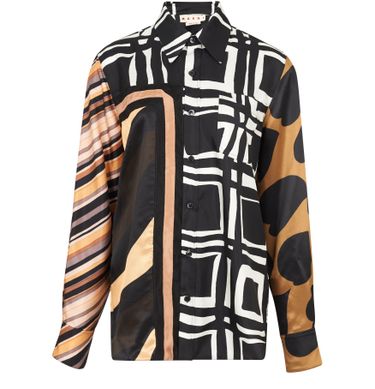 • Description : Graphic compositions, shirt collar, long sleeves, fluid material, tie-dye pattern.