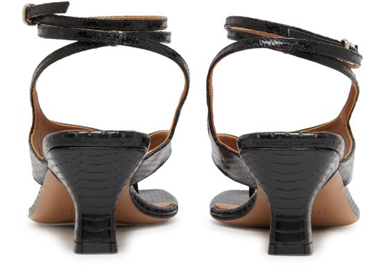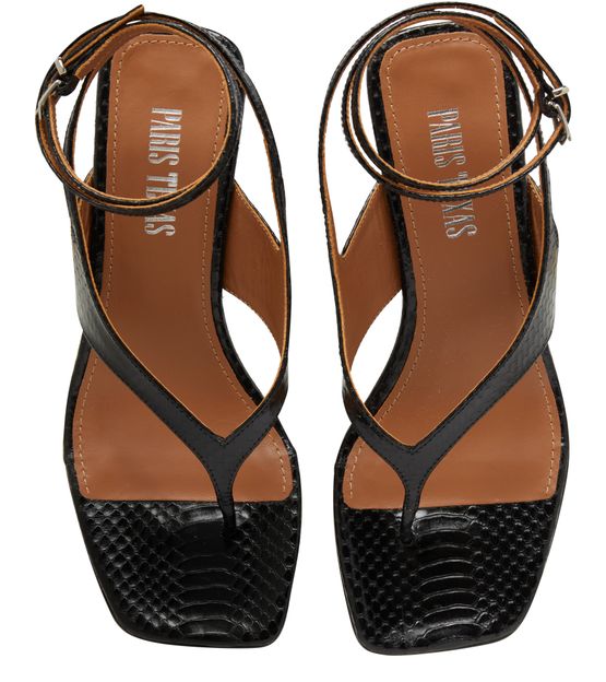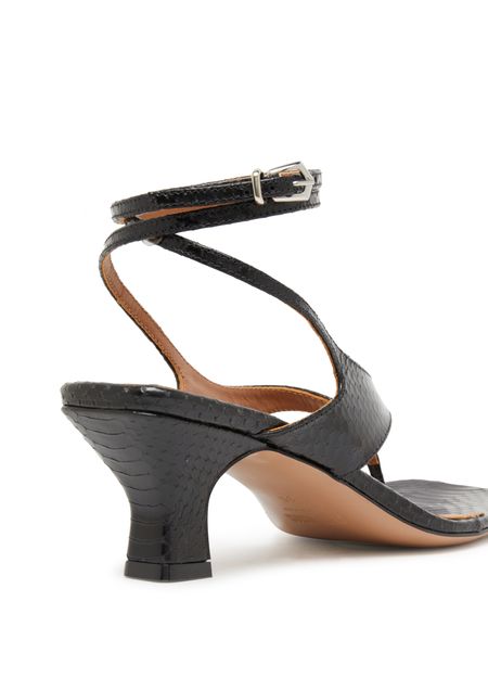 buckled ankle strap,