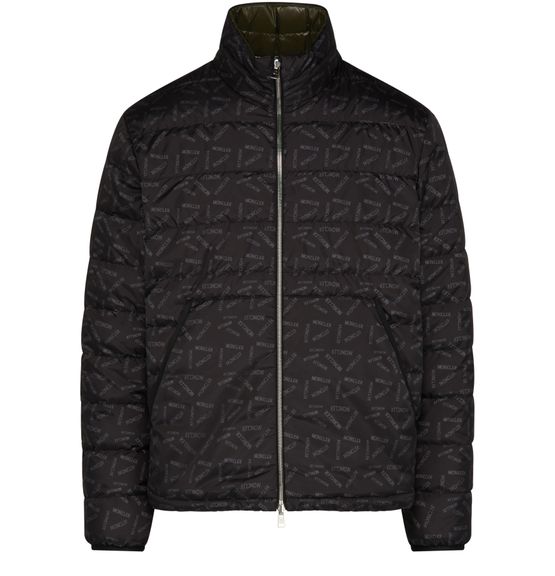 Moncler's Pouctal reversible puffer jacket is a cropped coat with a straight cut design. It features a mockneck, long sleeves with cuffs, and a unique all-over print. The jacket is versatile with a reversible design and a zipper fastening for easy wear. Stay warm and fashionable in this stylish puffer jacket.