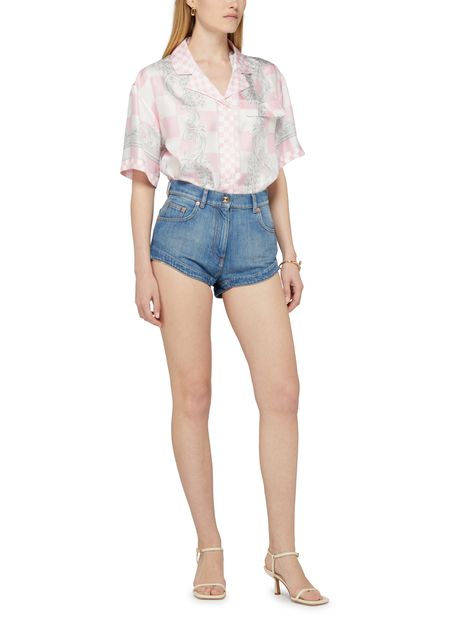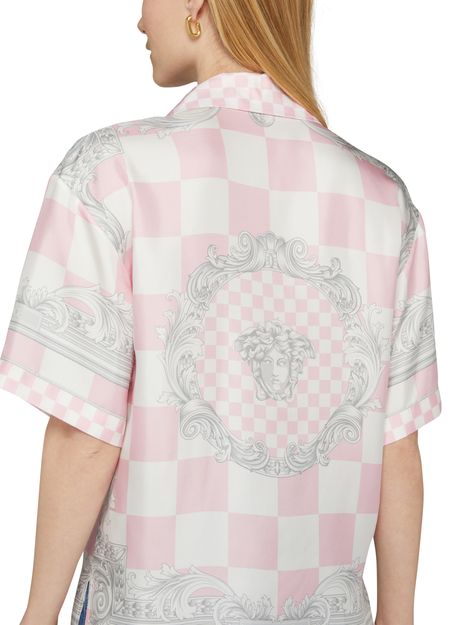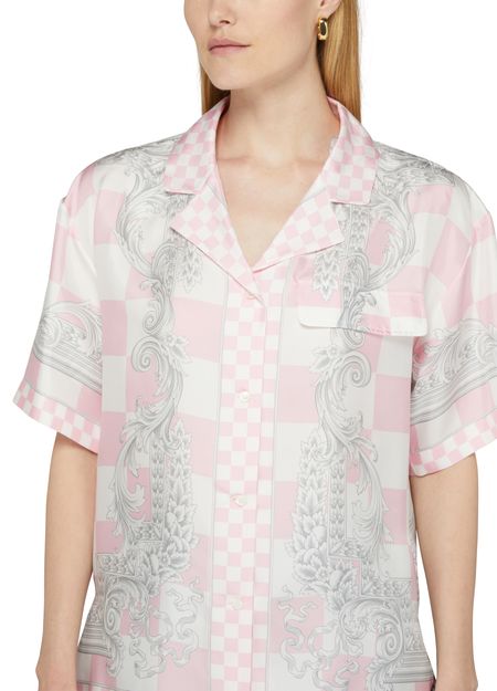 Description : regular length, logo at the back label, front buttoned closure, button fastening, shirts, all-over print, printed, short-sleeved, cuban collar.