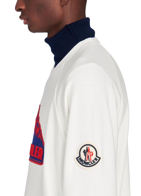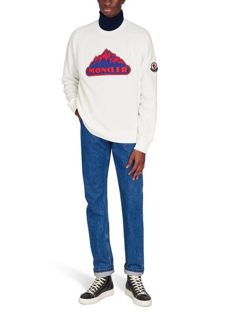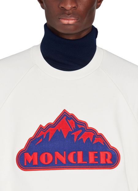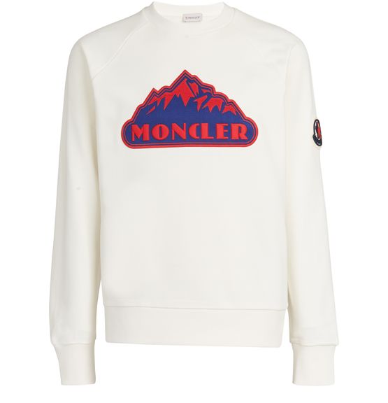 This printed sweatshirt is designed by Moncler with the brand logo on the front and the sleeve. This piece with a round neck features a full, straight cut. For a modern casual look.