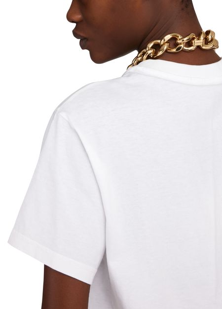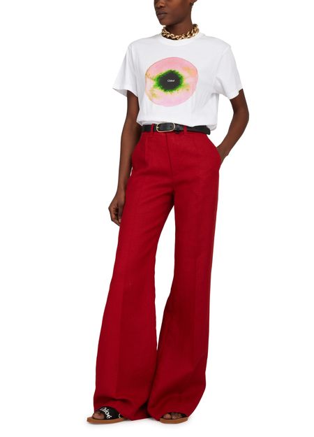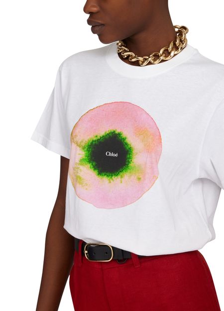This Chloé Printed t-shirt features a classic round neck and short sleeves, making it a versatile addition to any wardrobe. The chest logo adds a touch of branding, while the label with logo on the back adds a subtle finishing touch.