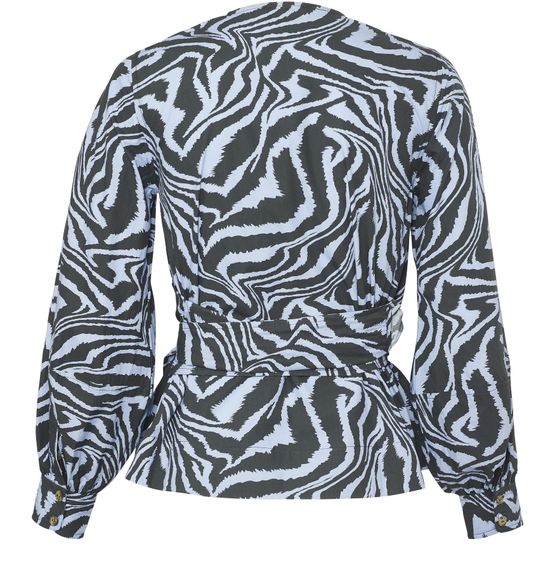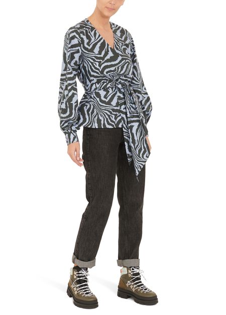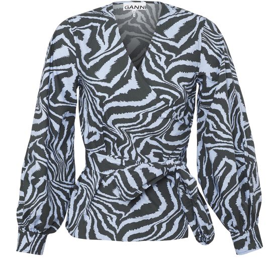 Dressing up its cotton fabric with a resolutely feminine animal print, Ganni's wrap front blouse has soft comfortable lines, made more feminine by the oversized knot.