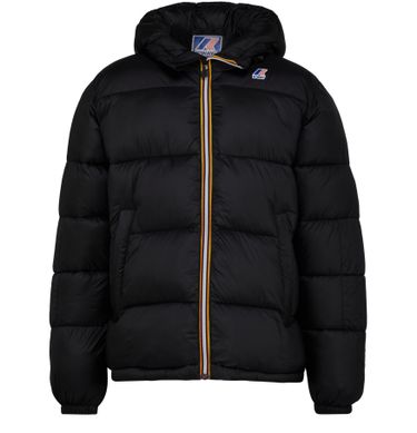 Stay warm and stylish in K-way's Puffer Jacket - Le Vrai 3.0 Claude Heavy Warm. This high-neck jacket features a straight cut with a drawstring for adjusting the waist. It also includes a hood, long sleeves with cuffs, side welt pockets, and a zipper fastening for easy wear. Perfect for chilly days.