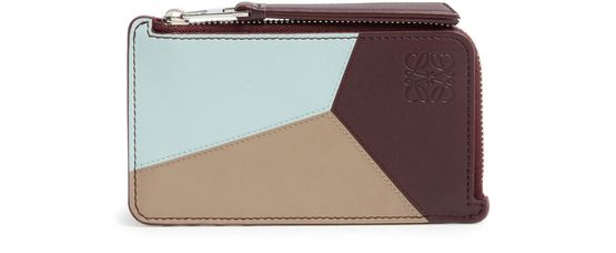 Reimagine Loewe's Puzzle Coin cardholder with its modern geometric details and smooth leather finish. This cardholder features a sleek zipper closure and interior slots, perfect for your essentials. The engraved logo and gold finish add an extra layer of sophistication.