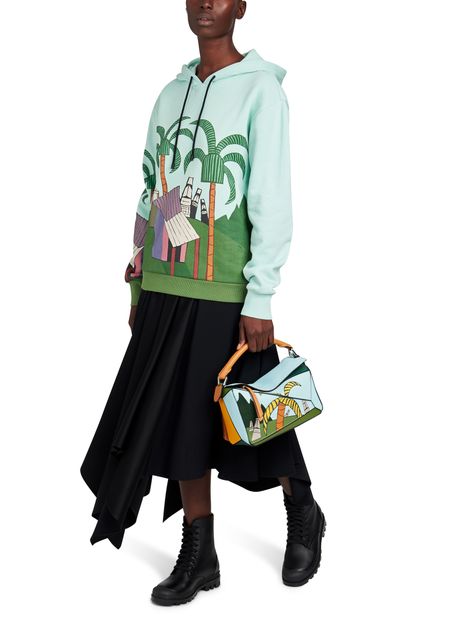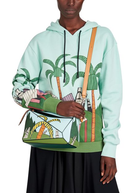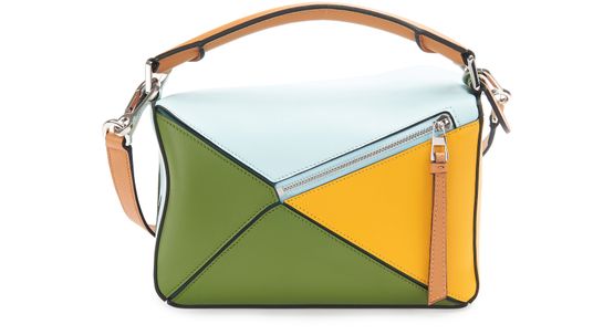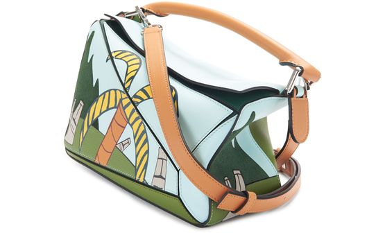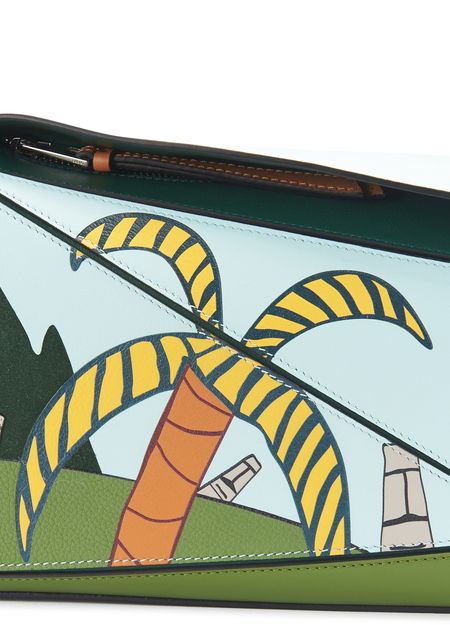 The Puzzle Easter Island small bag is part of the Ken Price Collection by Loewe. This elegant leather item is distinguished by the colorful design, which is directly drawn from the famous American artist's work. Moreover, this small, flexible bag has a shoulder strap and a short handle, meaning it can be carried in a variety of ways. Ideal for adding color to a contemporary...