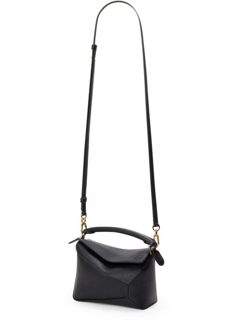 Reveal Loewe's mini crossbody with anagram medallion, crafted from smooth leather. The gold finish, embossed logo, and visible stitching highlight refined artistry. Featuring a single handle, thin adjustable strap, and flap closure, this piece offers versatile elegance in a compact, functional design.