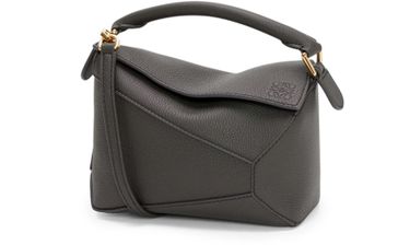 The Loewe Puzzle Edge mini bag is crafted from grained leather, featuring a sleek and compact design. It is equipped with a convenient handle and a detachable strap, allowing it to be worn either in the hand or on the shoulder. A stylish accessory for any occasion.