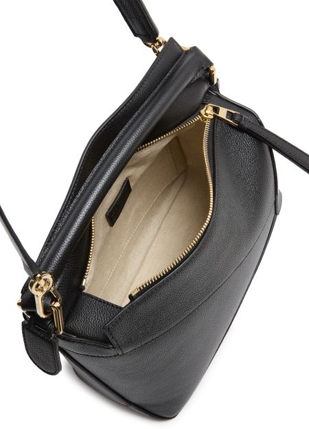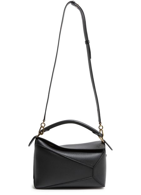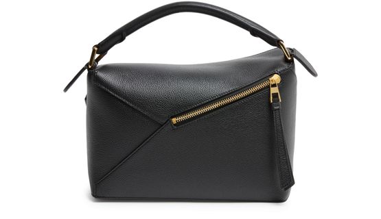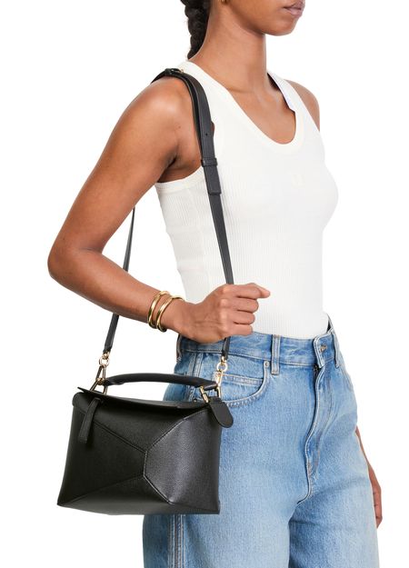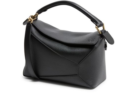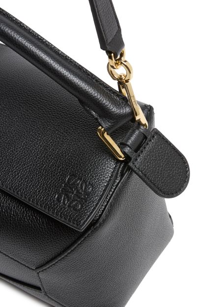 Reveal Loewe's Puzzle Edge small bag, crafted from grained leather with a single handle and metallic finish. Visible stitching and a refined flap closure highlight the brand’s signature craftsmanship, while the compact silhouette offers a modern, versatile accessory for any occasion.