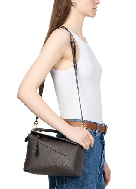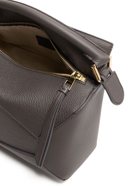 The Loewe small Puzzle bag is a stylish bag crafted from soft grained leather. It features a convenient handle and a detachable strap, allowing it to be worn in the hand or on the shoulder. With its sleek design and versatile functionality, this bag is a must-have accessory.