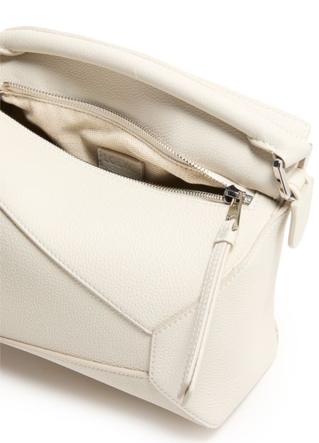 The Loewe small Puzzle bag is a stylish bag crafted from soft grained leather. It features a convenient handle and a detachable strap, allowing it to be worn in the hand or on the shoulder. With its sleek design and versatile functionality, this bag is a must-have accessory.