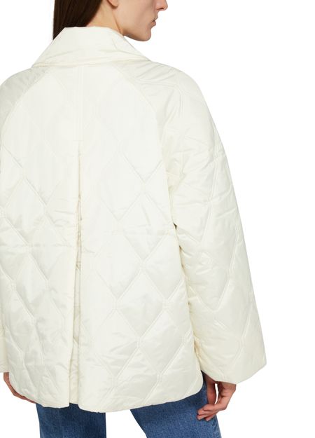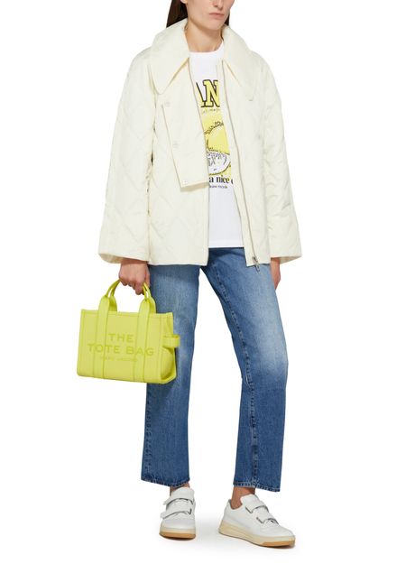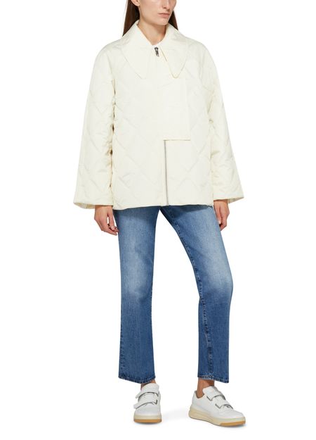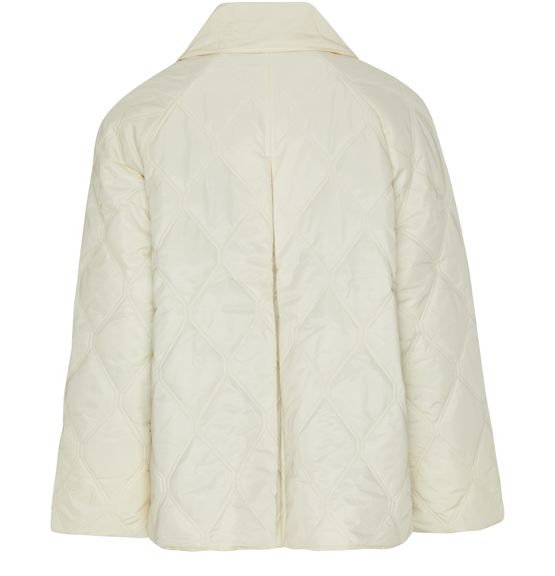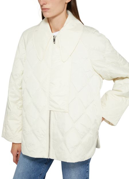 Ganni's Quilted jacket is a stylish and practical outerwear option. It features a long-sleeved design with a logo at the back label. The jacket also has side pockets for added convenience, a zipper closure for easy wear, and a padded texture for extra warmth. Perfect for staying cozy and fashionable during the colder months.
