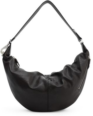 • Description : Hobo bag, shoulder bag, single handle, leather handle, smooth leather, zipper closure, zippered front pocket, visible topstitching, silver finish.