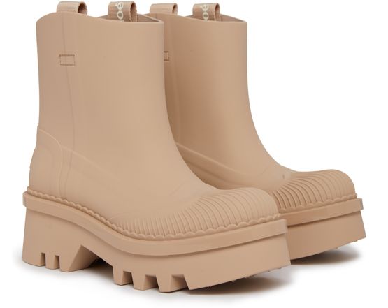 The Raina Boots from Chloé feature a very soft to the touch construction with a thick, notched sole for excellent traction. The high-top upper provides ankle support, while the logo on the side adds a signature touch. These boots are a stylish and practical addition to any wardrobe.