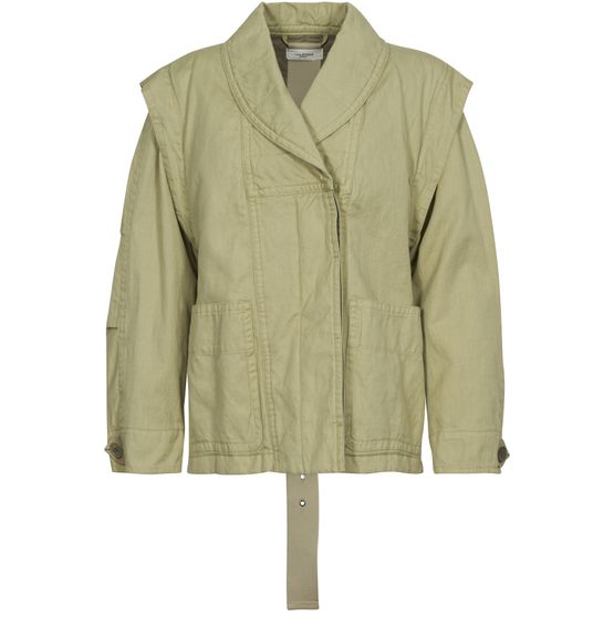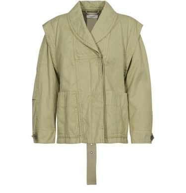 This Raine Jacket introduces a bold play on textures and a futuristic touch. The Isabel Marant Etoile brand reveals its signature style with some unprecedented design details. Oversized areas are found, both on the pockets and shoulders. Belted at the waist, this cotton blend jacket features highly structured finishes, with a unique and avant-garde style.