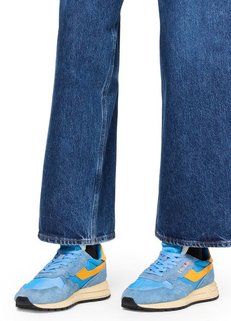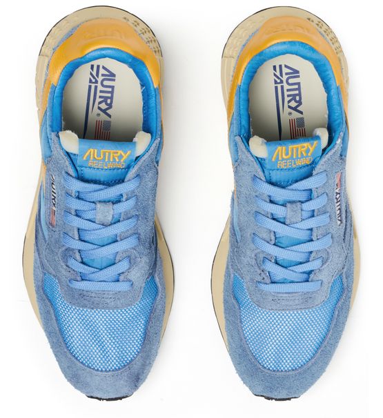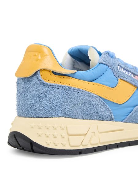 Autry's Reelwind low-top sneakers showcase a classic design with a round toe and visible stitching, ensuring durability and style. The logo on the tongue adds a touch of authenticity, while the logo on the side enhances its sporty appeal. Perfect for casual outings, these sneakers blend comfort with timeless elegance.