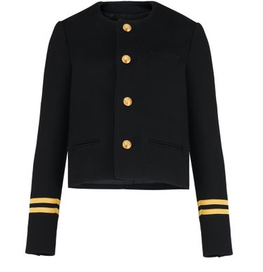Description : GOLD MILITARY RIBBON ON THE SLEEVES, cLASSIC FIT, cREW NECK, tAILORED WITH SHOULDER PADS, 2 WELT POCKETS, cHEST POCKET, 4 CELINE "COAT OF ARMS” BUTTONS, 4 CELINE "COAT OF ARMS” BUTTONS ON THE CUFFS, mADE IN ITALY, rEFERENCE : 2V75F6700.