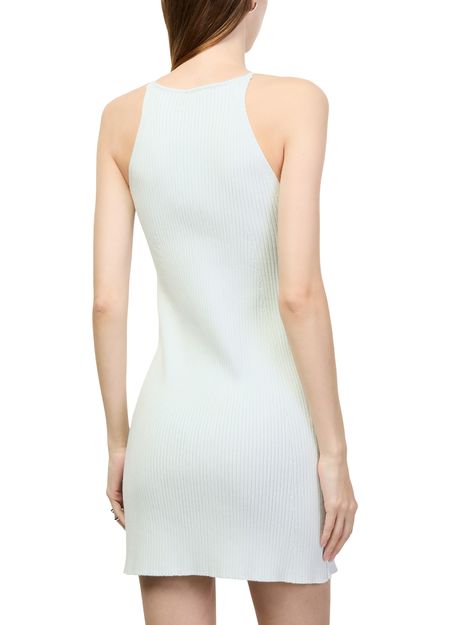 Reveal Courreges's rib knit A-Line dress, a sleeveless mini dress with a round neck and visible stitching. The ribbed texture and A-line cut create a refined silhouette, making it a versatile choice for day or evening. Effortlessly modern, this piece brings a fresh edge to your wardrobe.