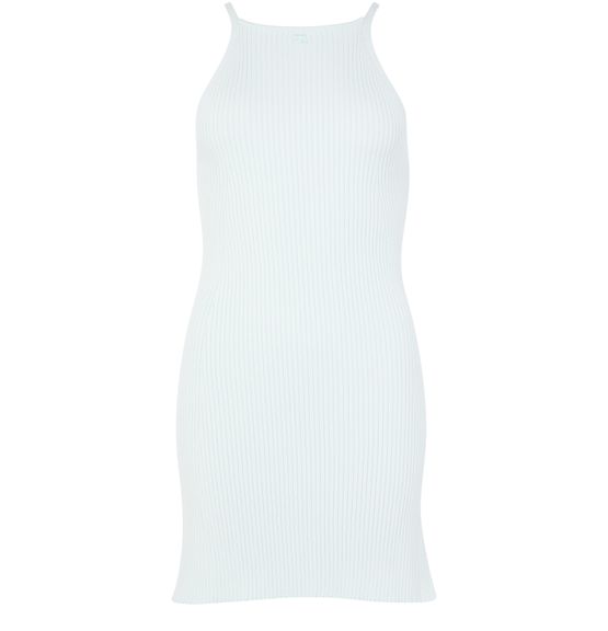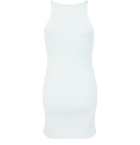 • Description : Ribbed, mini dress, round neck, sleeveless, fitted waist, visible stitching, a-line cut.