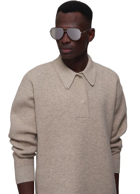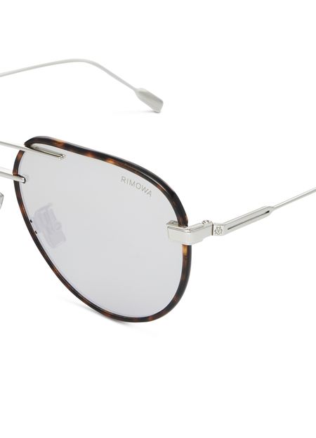 With a butterfly-inspired line, these RIMOWA Aviator Rim sunglasses from the house of the same name, take on a vintage accent, with their slender, slightly beveled tortoiseshell and metal frame.