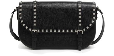 Valentino's Rockstud large messenger bag showcases a stylish flap closure and a sleek silver finish. With a single handle and a thin strap, it can be worn crossbody or on the shoulder. The zippered interior pocket offers practicality, while the visible topstitching adds a touch of sophistication to any outfit.