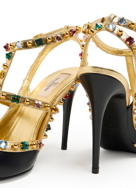 Step into elegance with Valentino's Rockstud pumps with strap, where sophistication meets edgy allure. The iconic studded design adds a bold touch, while the delicate strap ensures a secure fit. Perfect for transforming any outfit, these pumps elevate your style, making every step a statement of confidence and grace.