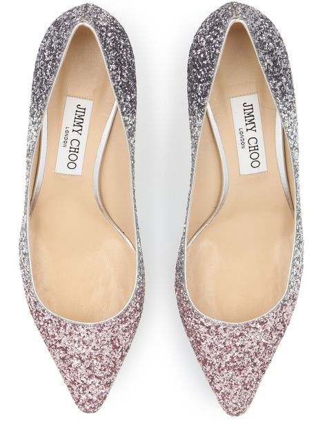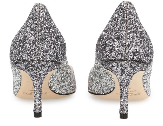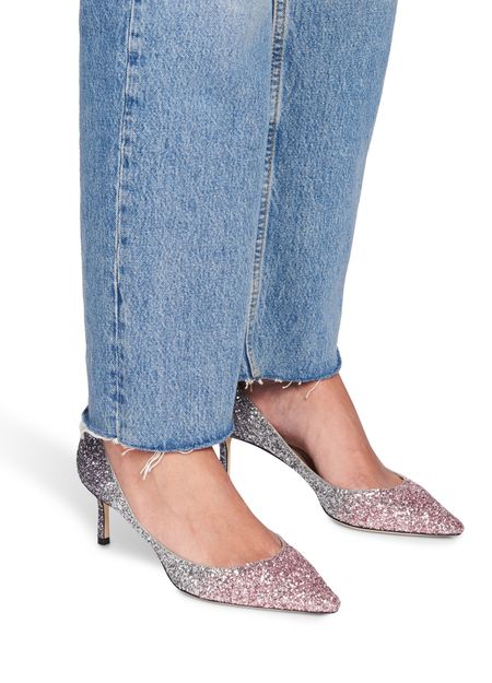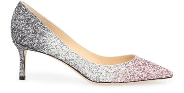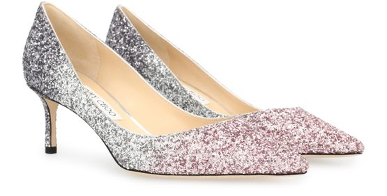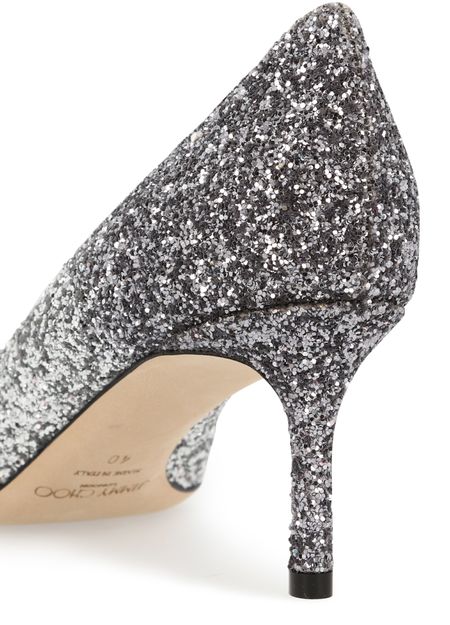 These Romy 60 pumps from Jimmy Choo combine feminine lines with bold glittering fabric. Their pointed toes and elegant curvature flatter your feet as you walk.