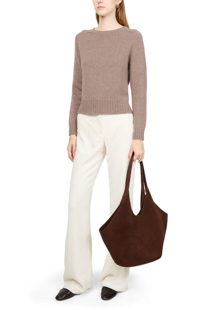 Reveal Bompard's cashmere round-neck sweater, a perfect blend of style and comfort. This regular fit, long-sleeved piece features a ribbed texture, offering a modern cropped silhouette. Ideal for layering, it effortlessly transitions from casual to chic, making it a versatile addition to any wardrobe.