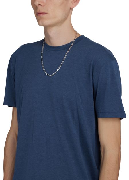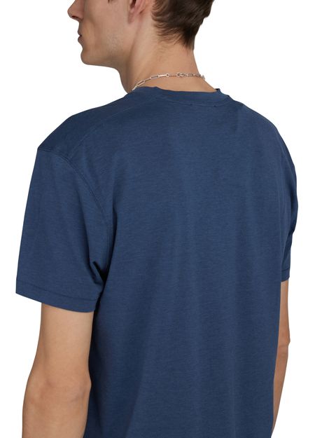 • Description : Short-sleeved t-shirt, round neck, ribbed, topstitched edges, straight cut.