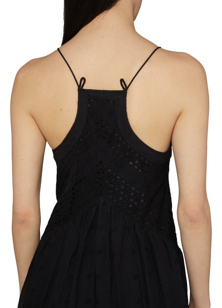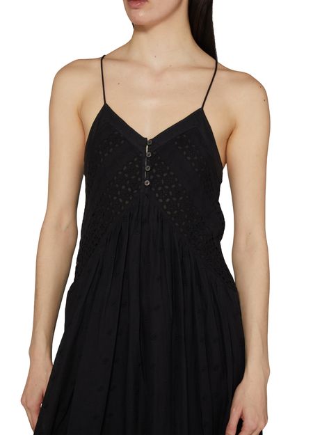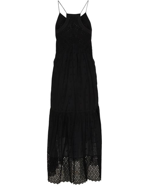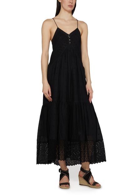 Etoile Isabel Marant's Sabba maxi dress showcases a flattering A-line cut that gracefully flows with every step. Its v-neck and front buttoned closure add a touch of elegance, while the delicate spaghetti straps enhance its feminine charm. Perfect for both casual outings and special occasions, this dress embodies effortless style.